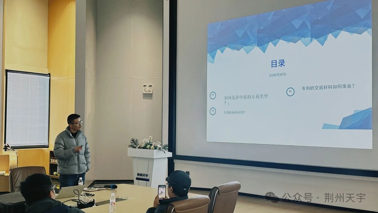 隨著市場競爭的加劇,專利已成為企業(yè)核心競爭力的關(guān)鍵要素之一。荊州天宇公司作為行業(yè)內(nèi)的佼佼者,始終將技術(shù)創(chuàng)新作為推動企業(yè)高質(zhì)量發(fā)展的核心動力。為了更好地挖掘和保護公司的創(chuàng)新成果,公司決定舉辦此次專題培訓,旨在提高員工對專利申報流程的認識,掌握撰寫高質(zhì)量專利文件的技巧,并了解專利在推動個人及公司發(fā)展中的重要作用。