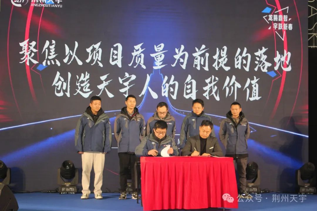 與此同時(shí),年會(huì)現(xiàn)場(chǎng)各個(gè)工廠及主要部門(mén)簽訂2024年目標(biāo)達(dá)成責(zé)任狀并做現(xiàn)場(chǎng)誓師。