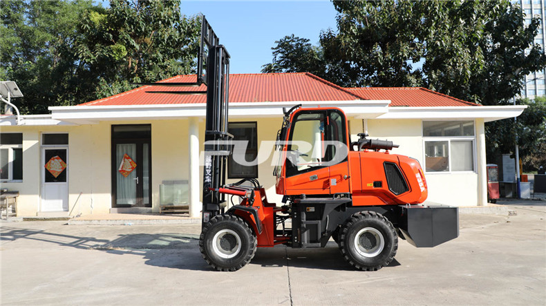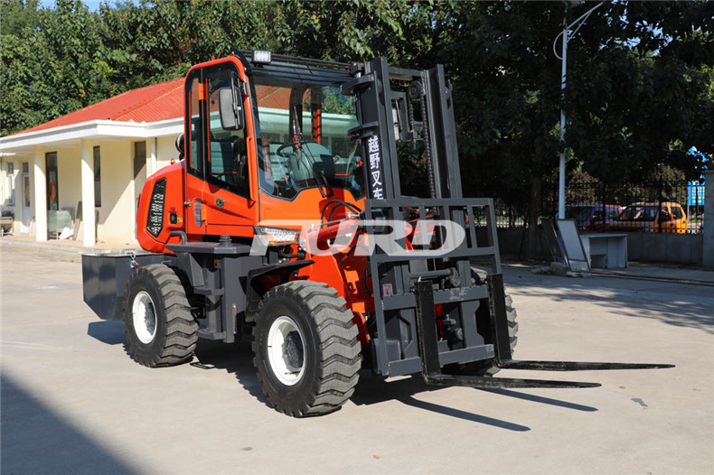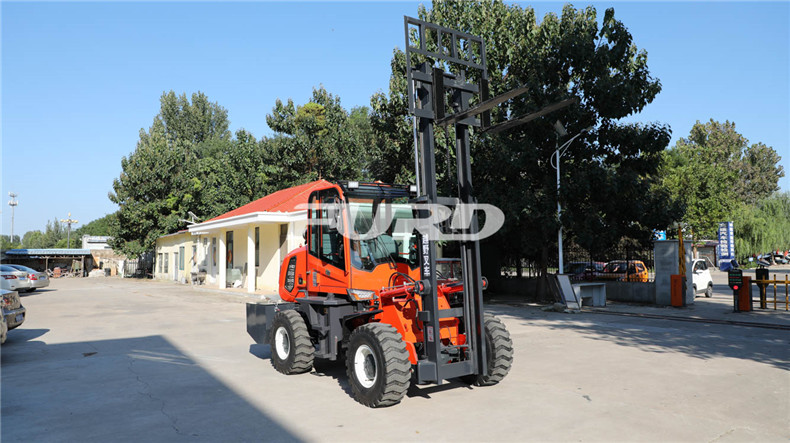 5.越野叉車發(fā)動機功率大,采用全輪驅(qū)動和越野輪胎。